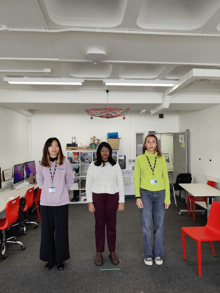 We also taped a mask (of John Fass, the course leader) to a baseball cap to create a constant sense of being watched, even in peripheral vision. We noticed that this made everybody who wore it incredibly uncomfortable, although it was fairly unrealistic. From feedback in our presentation, we were reassured that the idea of studying the effect of GDS on heightened self-awareness (as mentioned in Conty, George, Hietanen 2016) was a positive one, and so we are more inclined to build a more versatile experiment-based prototype for our final design. We plan on doing something to incorporate movement, a key part of the human GDS, and so we plan on including a digital element (via a mobile phone or tablet).