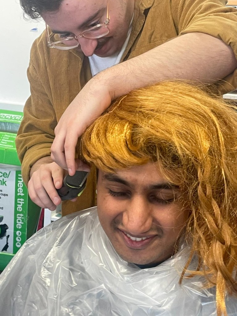 For bodystorming, we decided to focus on the haircut aspect, as it made for an immediately accessible way to explore this idea of ritual, and so we put a wig and gown on each member of the group and cut the wig with trimmers and scissors. While doing so, we noticed a divide by gender among our reactions to the sounds of the haircut: Cristele, Weiting and Tanya had much more viscerally uncomfortable reactions to the sounds of trimmers and scissors than me or Romit. This led us to attempt to explore sounds further in our prototype.