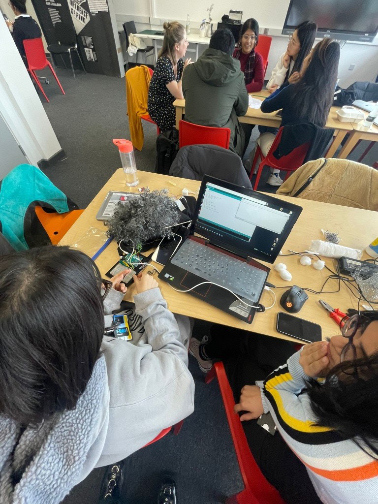 For our prototype, our idea was to mount hair on a part of the body normally hairless and very sensitive (the palm of the hand), and vibrate the hair in response to sound in order to highlight hair’s role in the auditory system. However, we were unable to get our Arduino microphone working in time, despite Weiting’s best efforts. Looking back, we had started constructing the prototype too late to do anything this ambitious, and should have committed to our idea earlier to give us a better chance of completing its development.