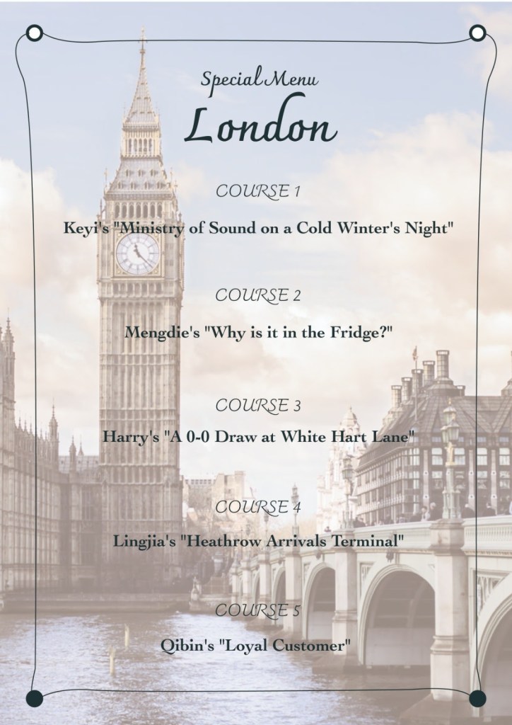 Our task this week was to produce a journey connecting the inner world to the outer world (or vice versa), particularly focusing on the study of psychogeography. Our final project was a tasting menu of 5 dishes, each chosen by a member of the group as a dish we connected to our emotional experiences in London. For instance, my course was a builder’s tea from the old White Hart Lane – a strong memory from my first visit to London proper, aged 4.