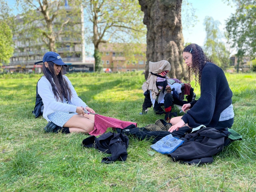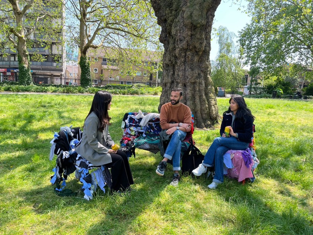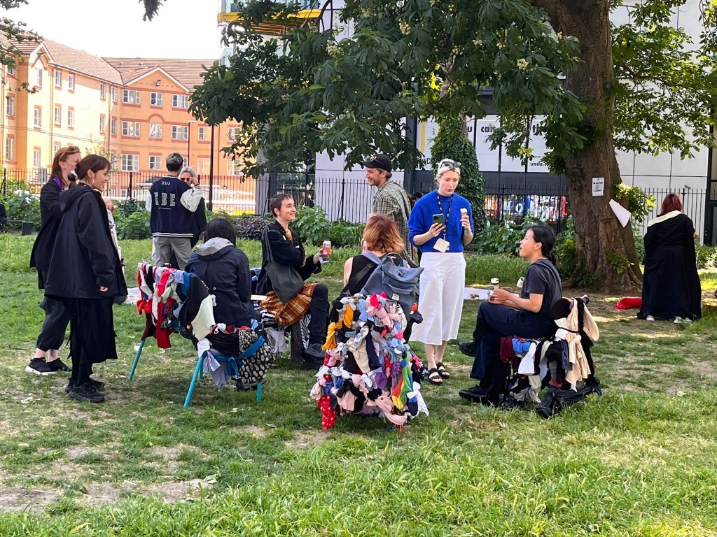 We started by getting to work on our workshop. As we needed feedback sooner rather than later, we decided to perform a rough version while we finalised the materials for it. We crafted example furniture with the second-hand clothes we bought last week, and asked our participants simply to tell stories about their clothes.