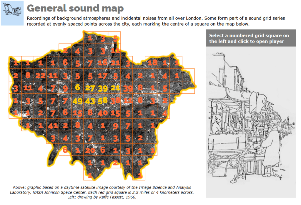We have also grown more confident in the idea of soundscapes in our work, and have begun looking at resources for accumulating archival sound. The London Sound Survey may be incredibly useful here – a resource of CC-licensed archival sound, organised by region of London, that dates back as far as the 1920s in some cases. We have already begun collecting sounds that are particularly interesting to us.