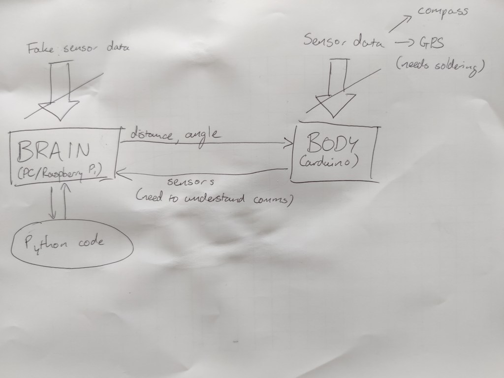 On the technological side, I took out Arduino equipment from the CTL, and ordered a GPS and compass sensor online. The basic structure of the code is detailed below, but it relies on treating a map as a 2D surface, calculating angles from trigonometric functions around differences in latitude and longitude, and sending the desired angle and distance to the Arduino to drive the motor and lighting (which will change from blue to red, as if from cold to hot).