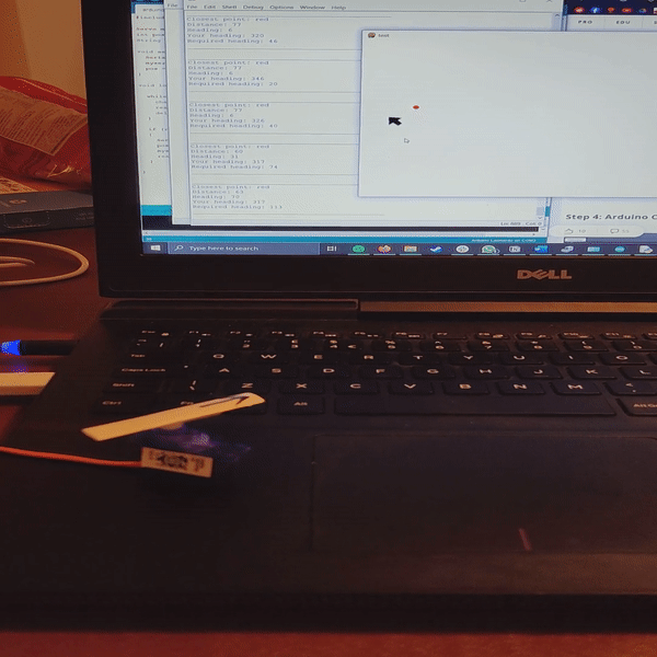As I cannot get the sensors working on my own, I built a simulation in Python to test out the motor and lighting components. Limited by the fact that Servo motors only rotate through 180 degrees, we will have to lock the compass in place when it is too far right or left for the motor to successfully rotate.