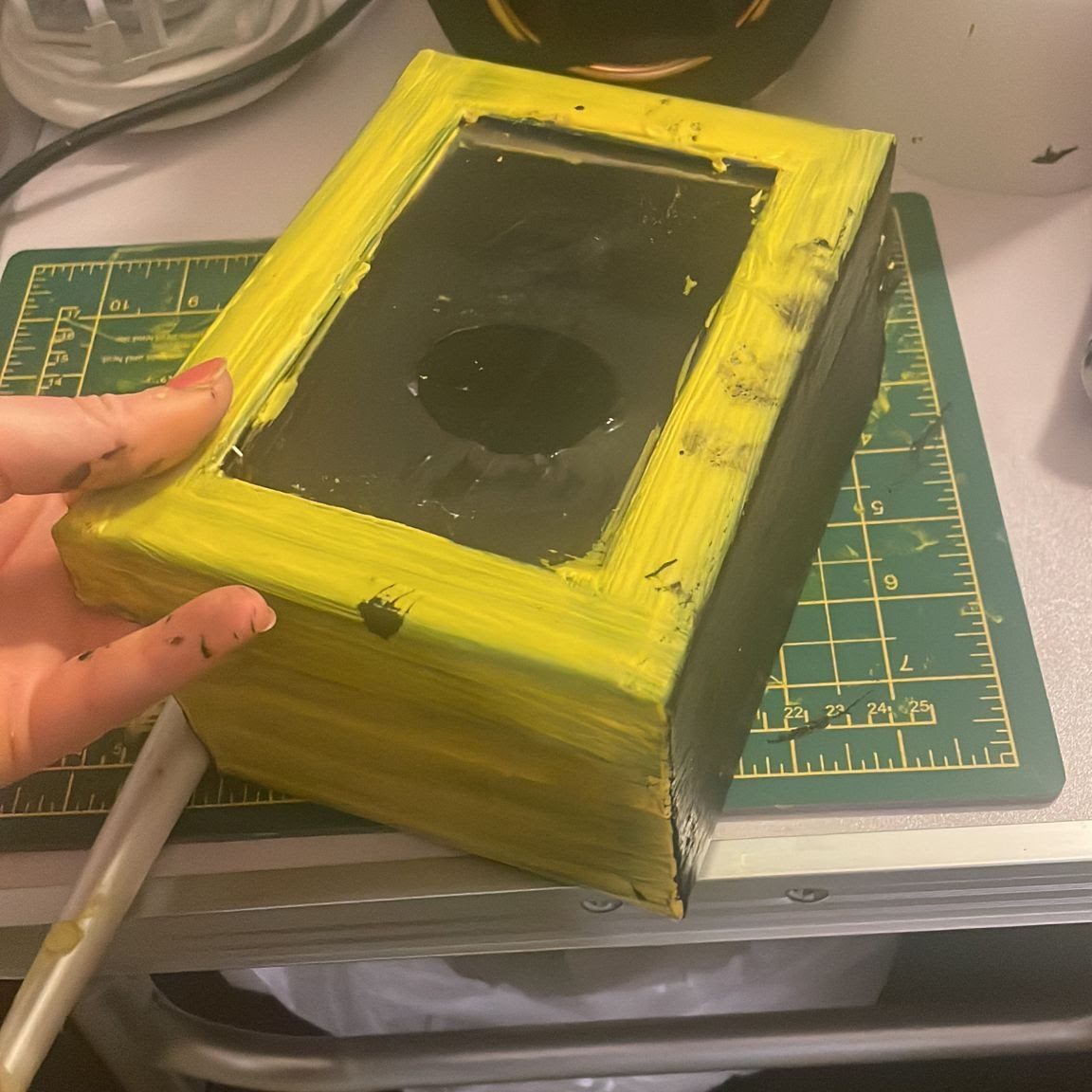 Cristele was able to find and paint a gift box from a local hobby store, and we connected our compass and motor inside to begin testing.