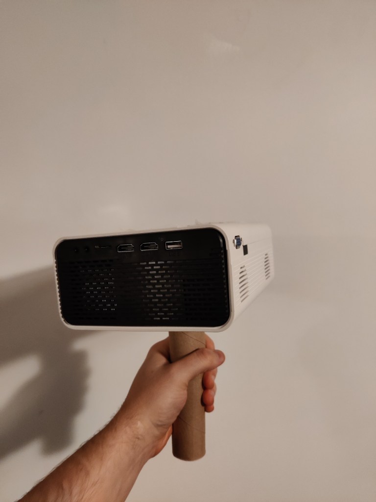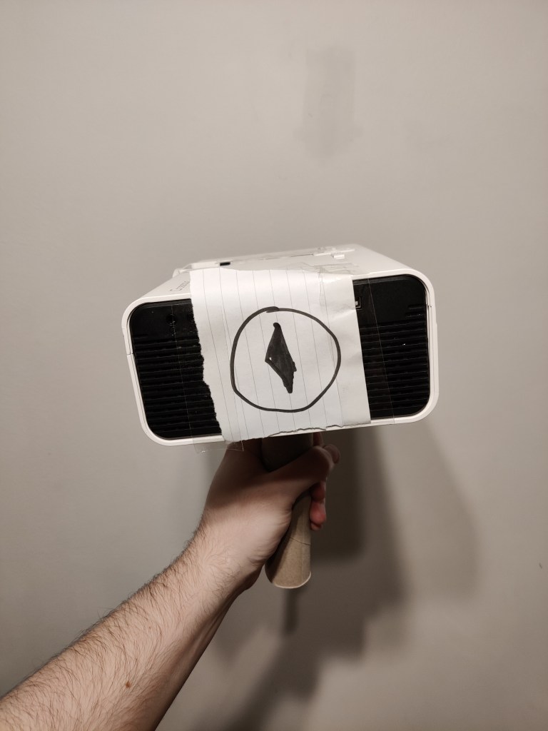 I decided to test potential ergonomics for the box (as well as a possible camera grip to mount on the bottom) with an overly large and heavy proxy for the compass – an old projector I had lying around. This showed that we would be able to make the compass carry-able, even if our tech and container were heavier than expected.