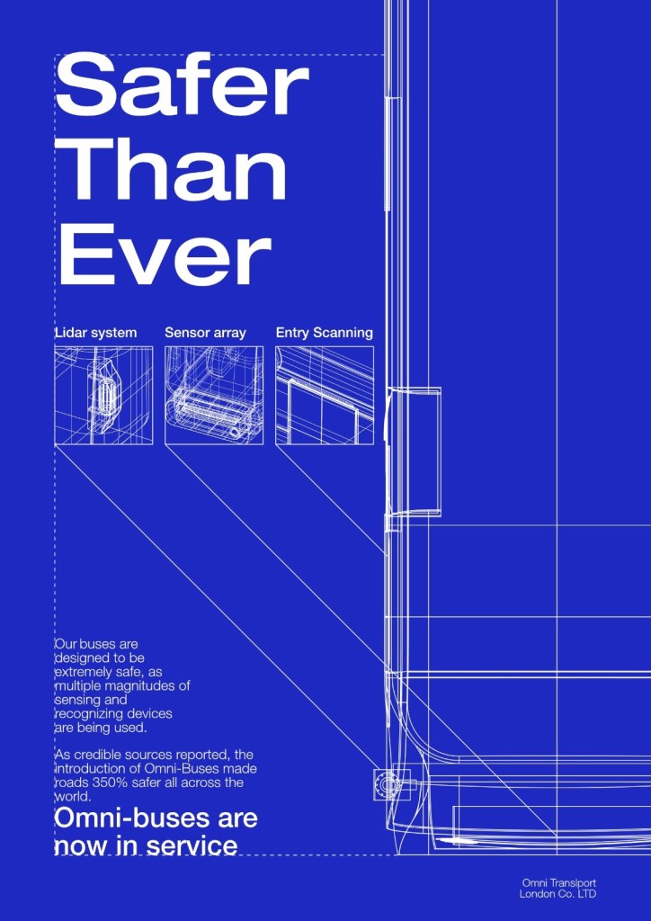 A speculative design project, we created a possible future for self-driving public transport, oriented around a private-public partnership with a tech conglomerate named OMNI, and a grassroots movement to protect the population called the Lighthouse Group. The project was displayed as a museum exhibit.